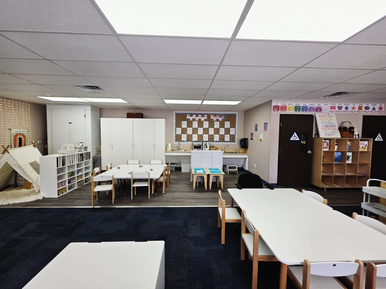 Designed with students in mind, this TK classroom includes in-classroom restrooms and dedicated learning zones.